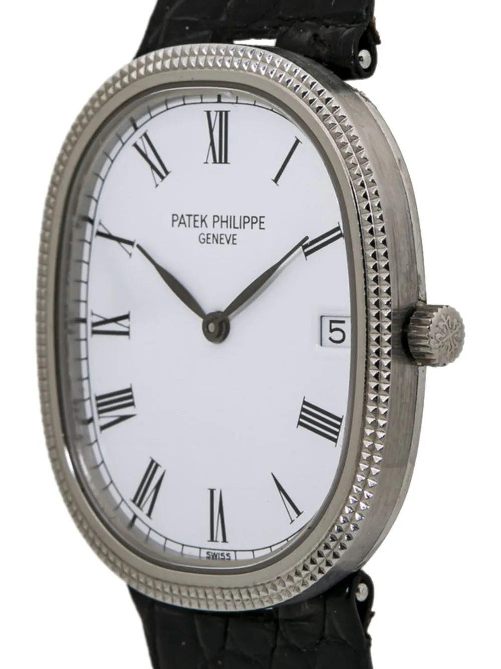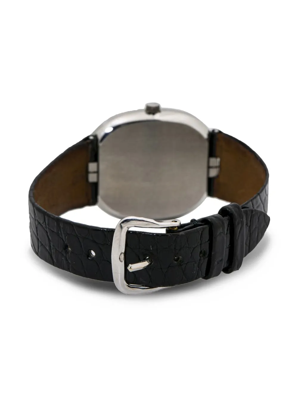 A Patek Philippe timepiece is something to treasure. Offering both elegance and perfect punctuality, this 1990 pre-owned Ellipse 29mm is crafted from stainless steel with an embossed leather strap to make an archival and unique addition to any collection.