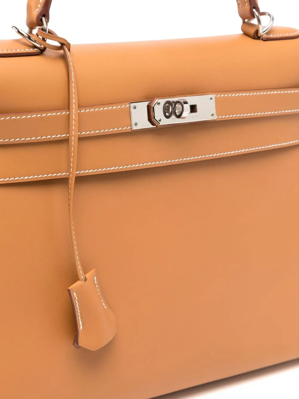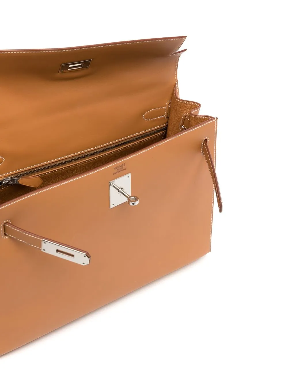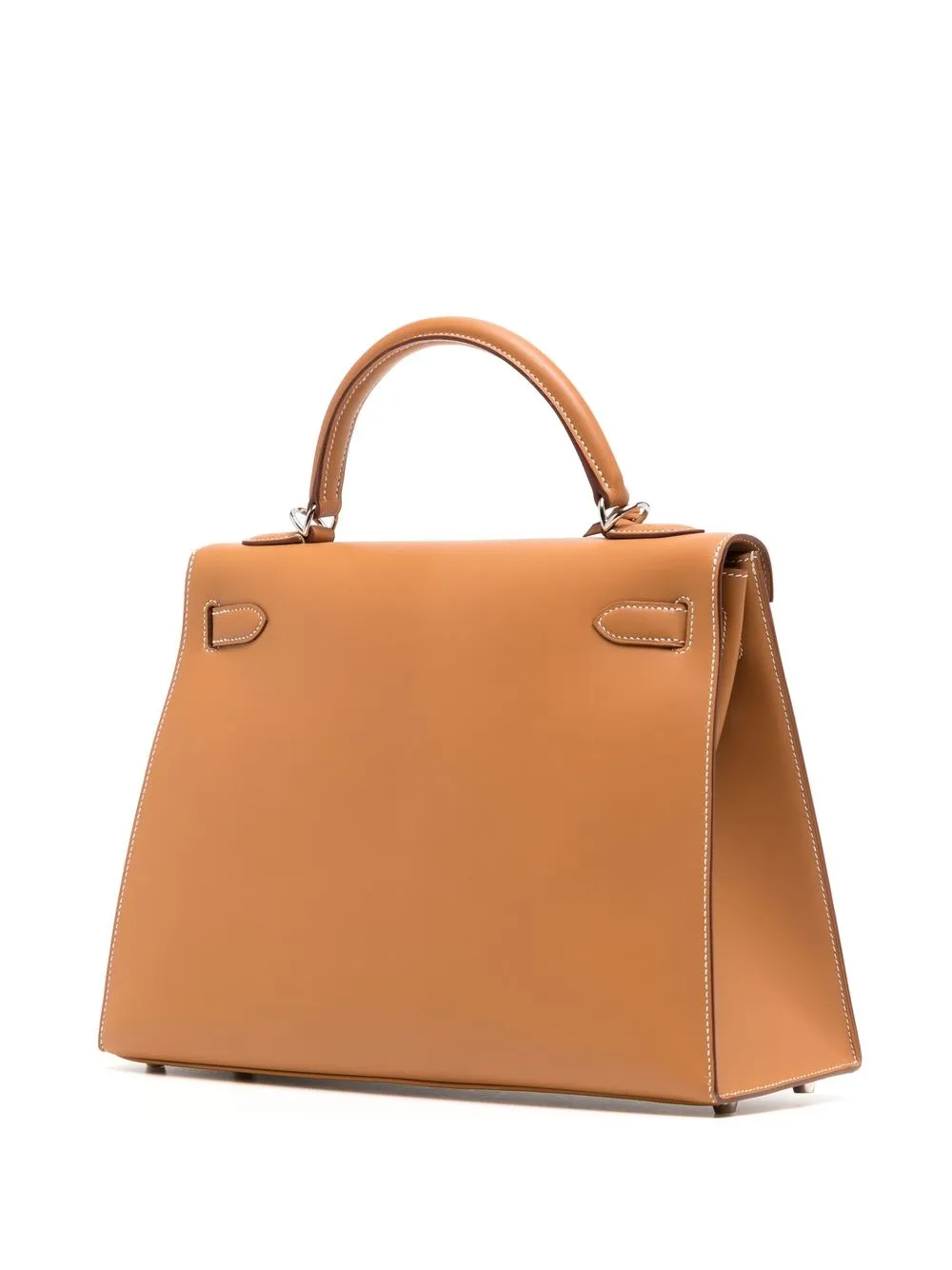 Named after Grace Kelly in 1977, the Kelly bag from Hermès became one of the most sought-after styles in the world. Crafted from box calf leather with a trapeze-shaped body, this brown 2002 Kelly 32 Sellier version is finished with polished palladium-tone hardware.