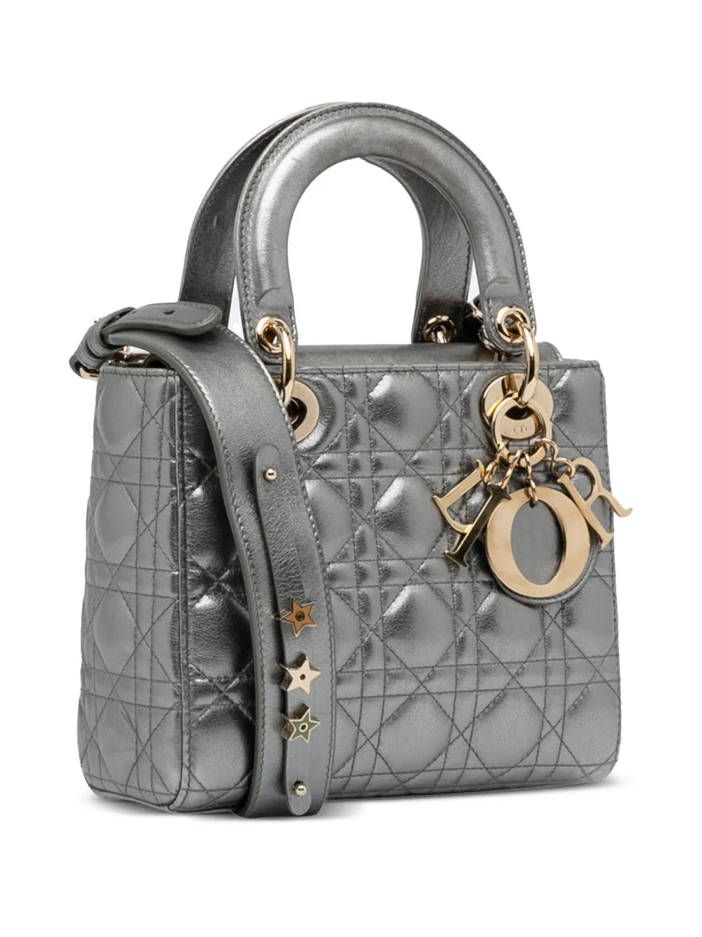 Inspired by Napoléon II Cannage chairs, the Cannage quilt from Christian Dior is a unique and charming signature, found all over this small silver-tone Lady Dior handbag, finished with contrasting gold-tone hardware.