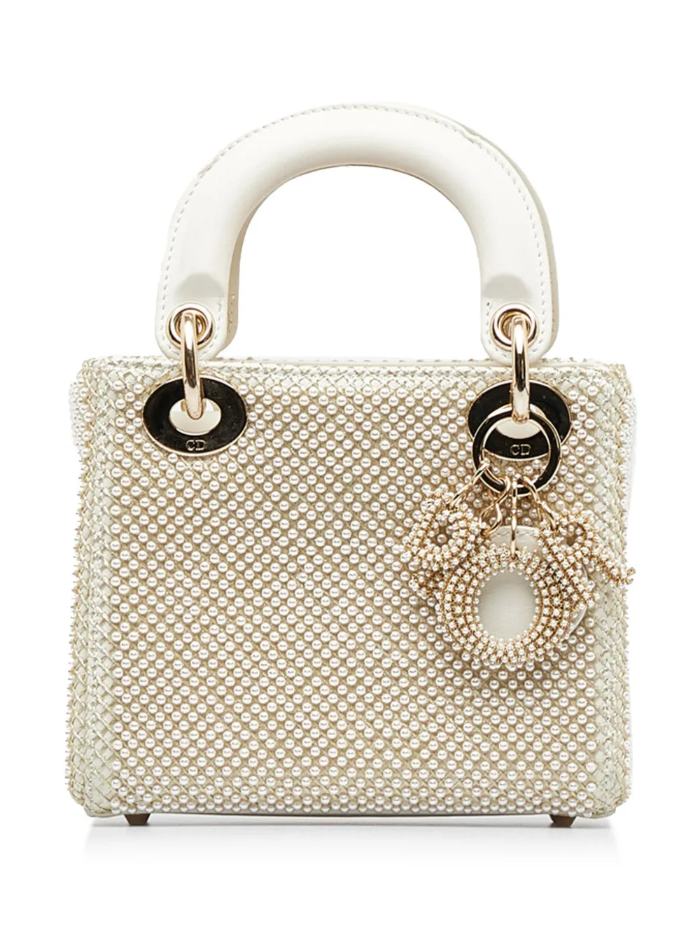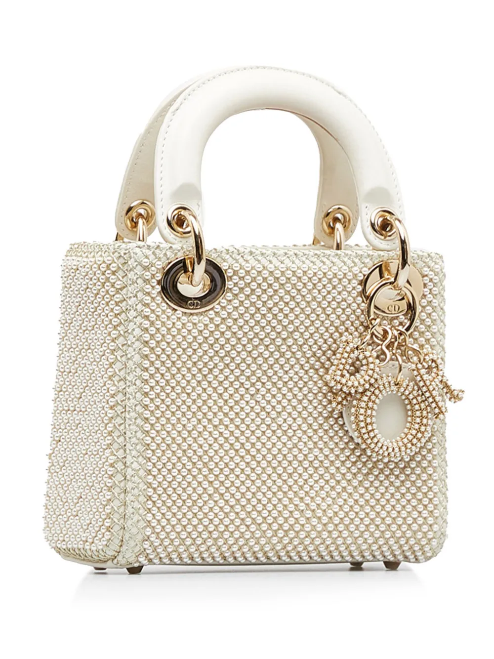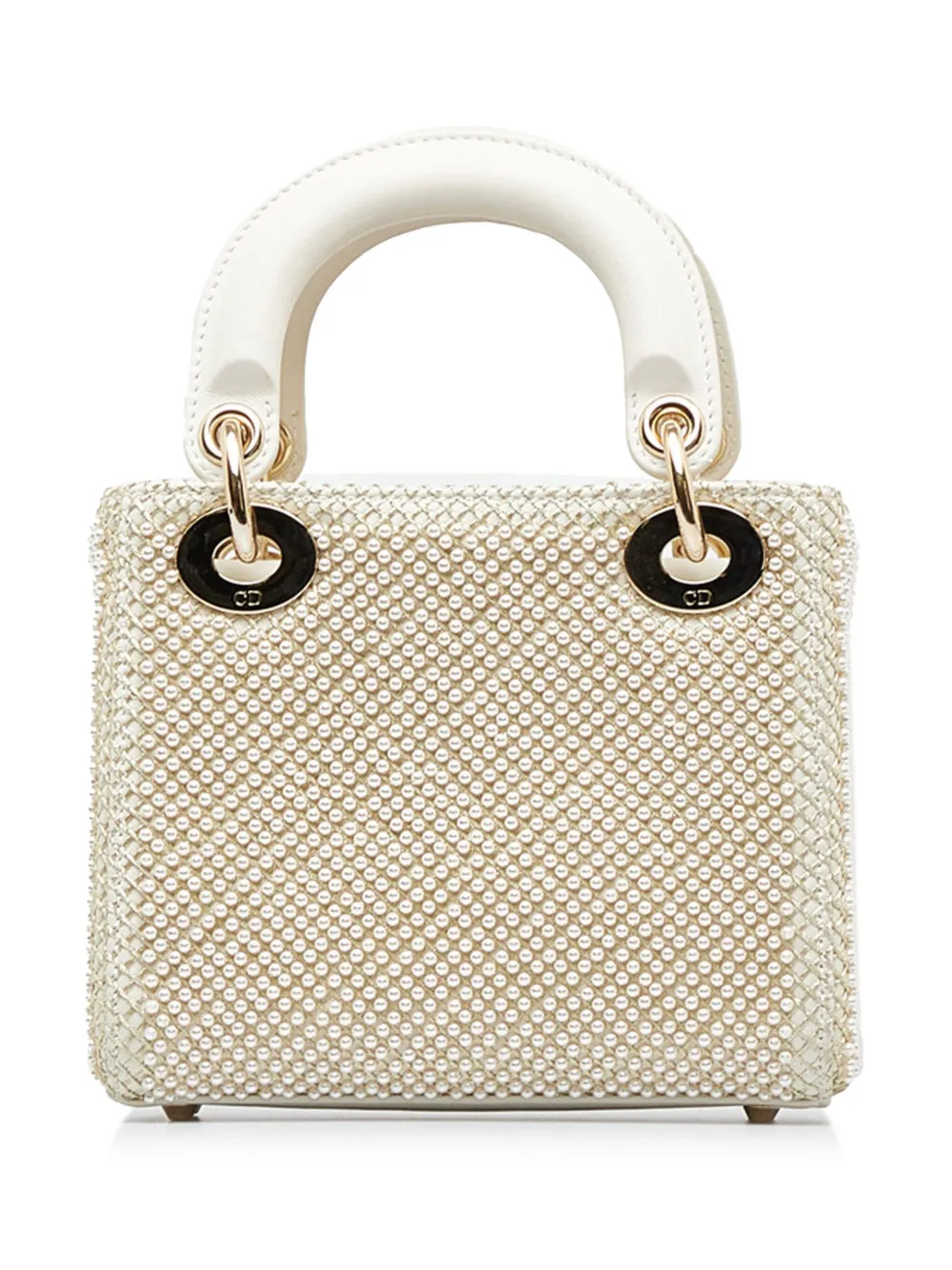 Made popular by Princess Diana and later named after her, Christian Dior's Lady Dior is one of the maison's most iconic styles. Crafted from smooth white calf leather, this mini-sized limited edition is embellished with faux pearls finished with the signature letters charm in polished gold-tone metal.