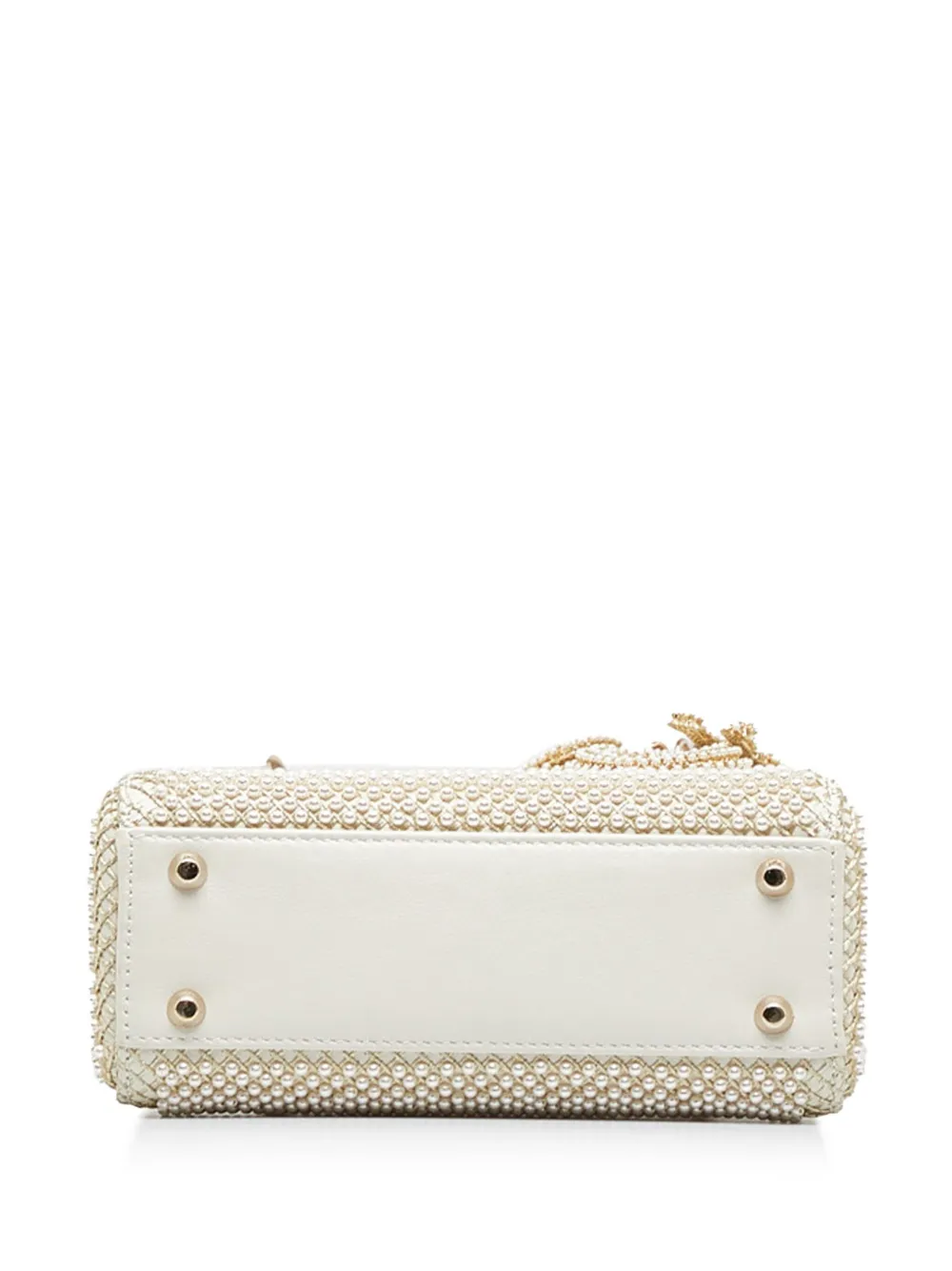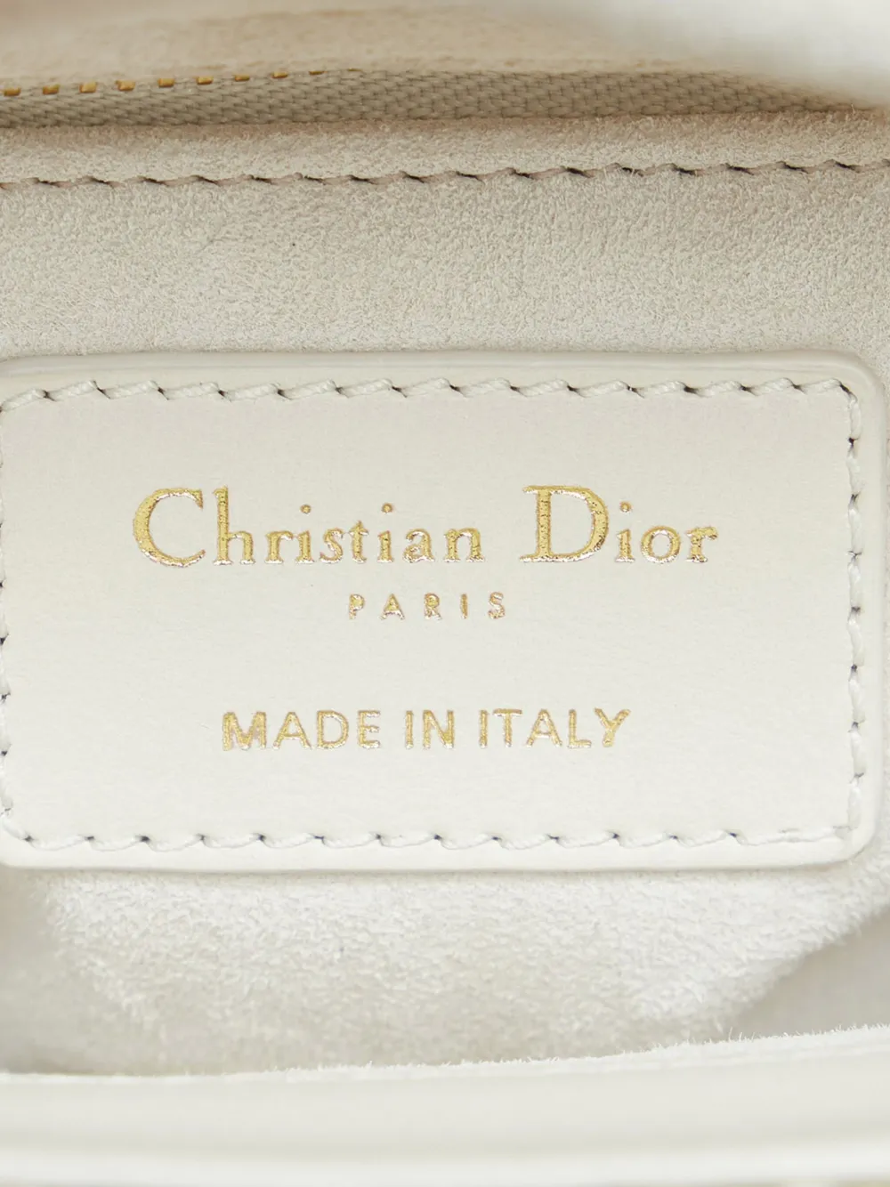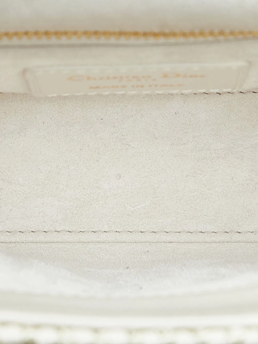 Made popular by Princess Diana and later named after her, Christian Dior's Lady Dior is one of the maison's most iconic styles. Crafted from smooth white calf leather, this mini-sized limited edition is embellished with faux pearls finished with the signature letters charm in polished gold-tone metal.