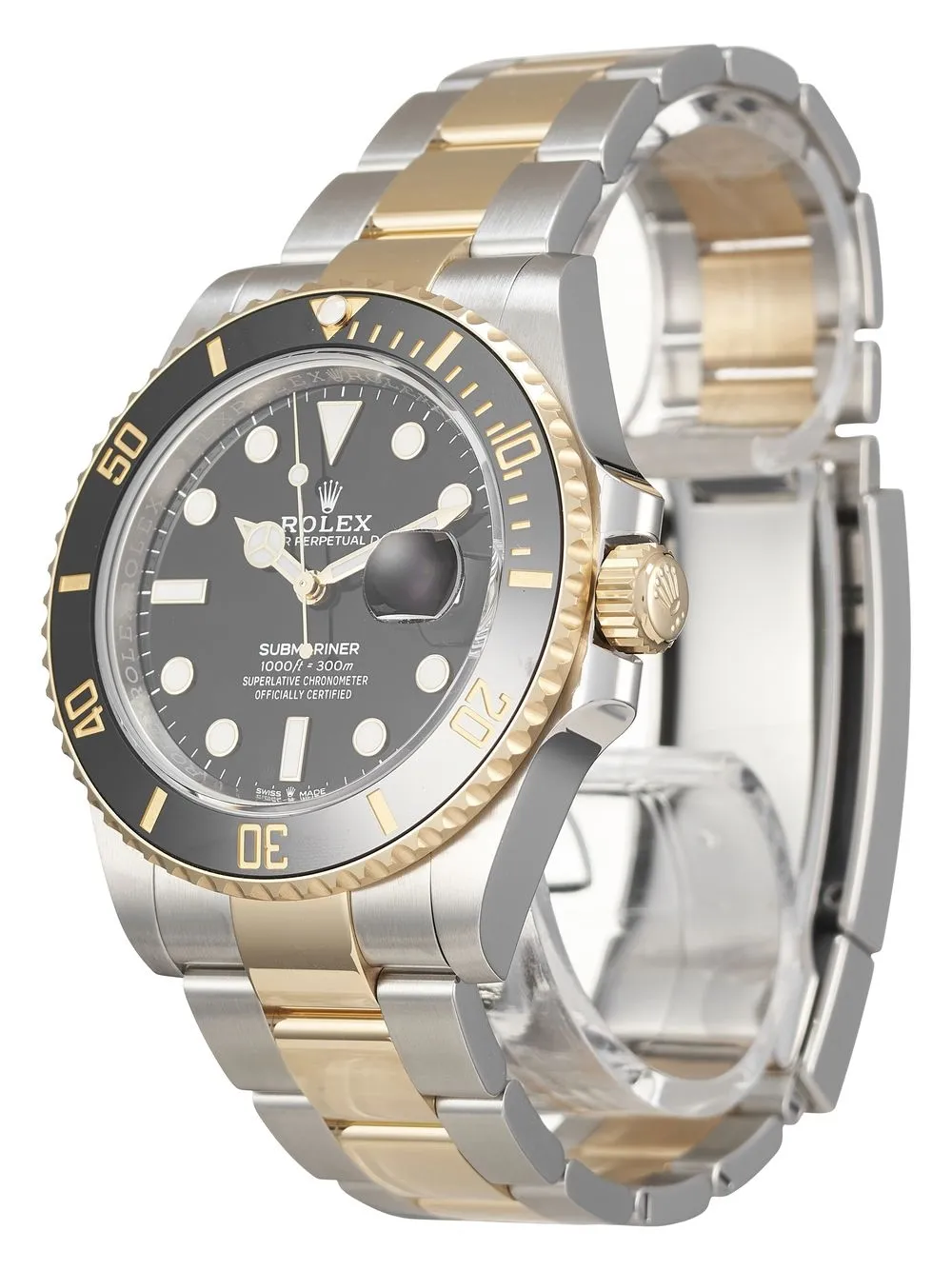 In the late 1960s, Rolex released a new edition of the beloved Submariner diving watch. Similar to preceding models, this updated version garnered the name "Submariner Date", coined from the new date indication on the dial and the magnified Cyclops lens found within the crystal glass on this 2022 unworn Submariner Date 41mm.