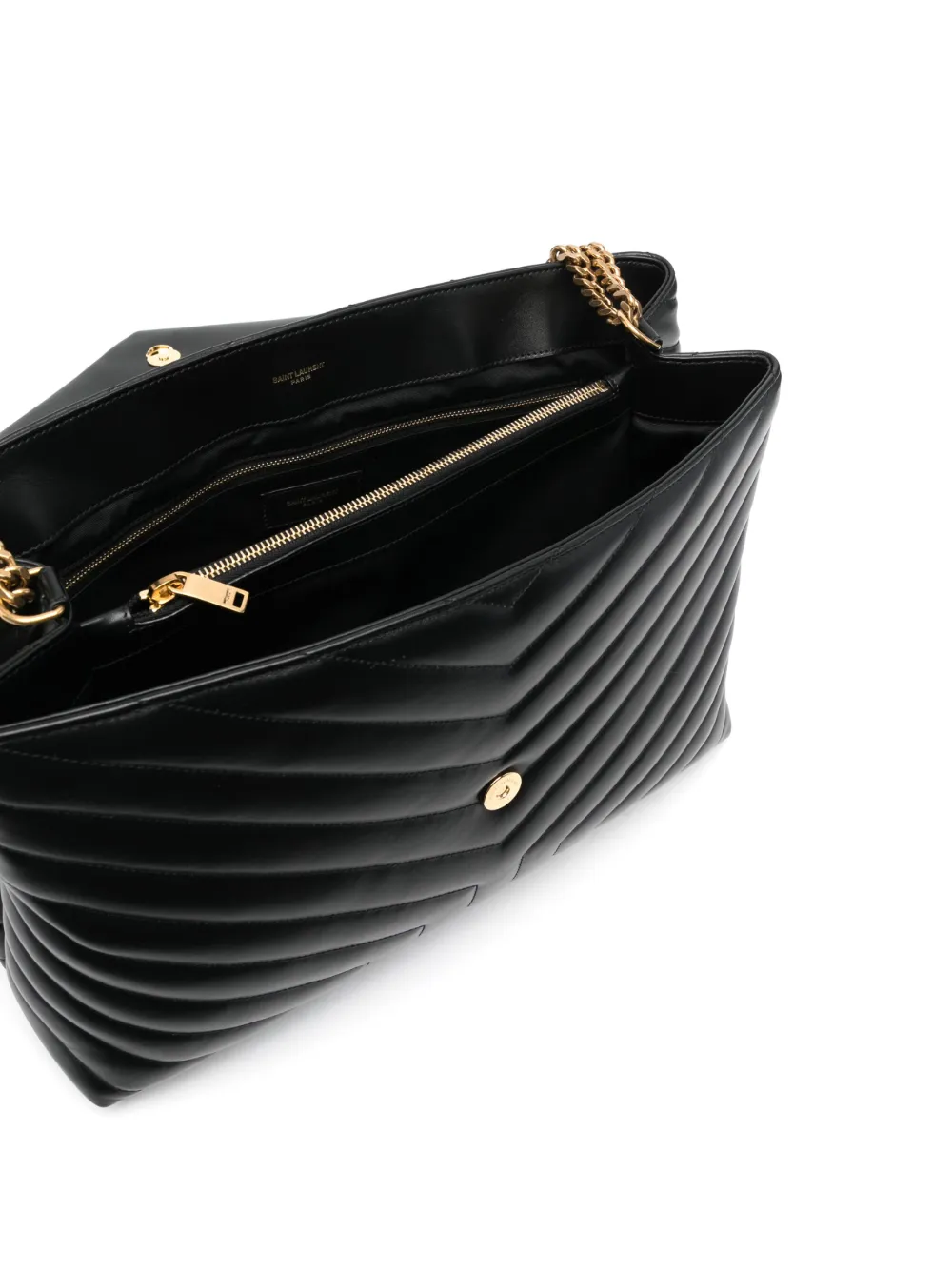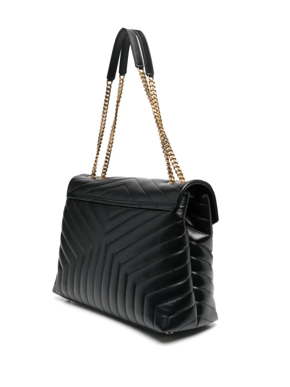 One of Saint Laurent’s most iconic designs, the Loulou shoulder bag carries the label’s sense of typical Parisian refinement. Seen here in a larger iteration for added storage space, this piece has been accented with the brand’s signature YSL plaque, echoed by gold-tone hardware.