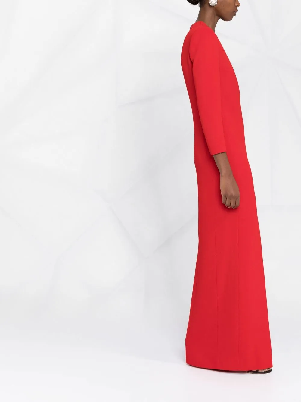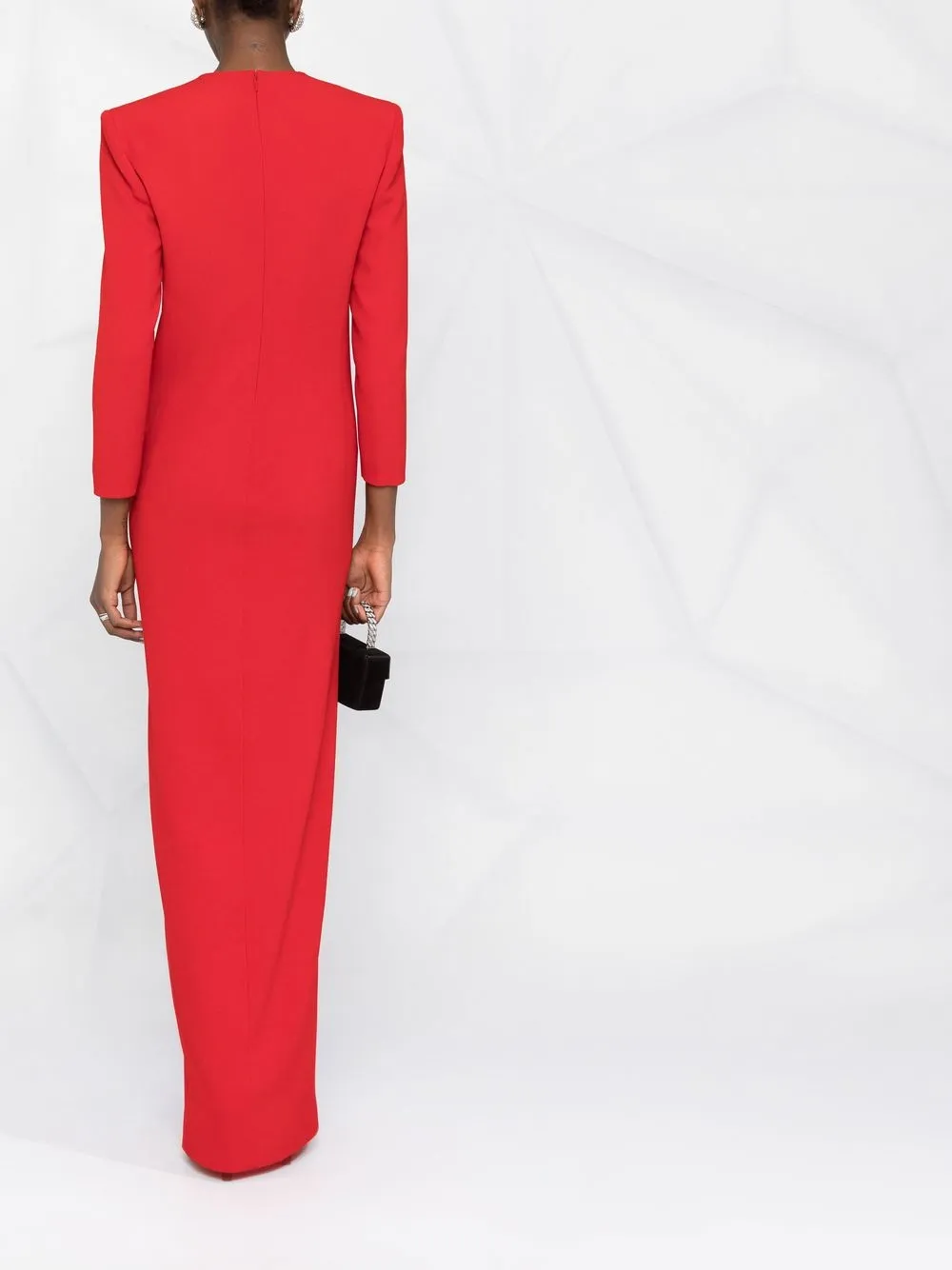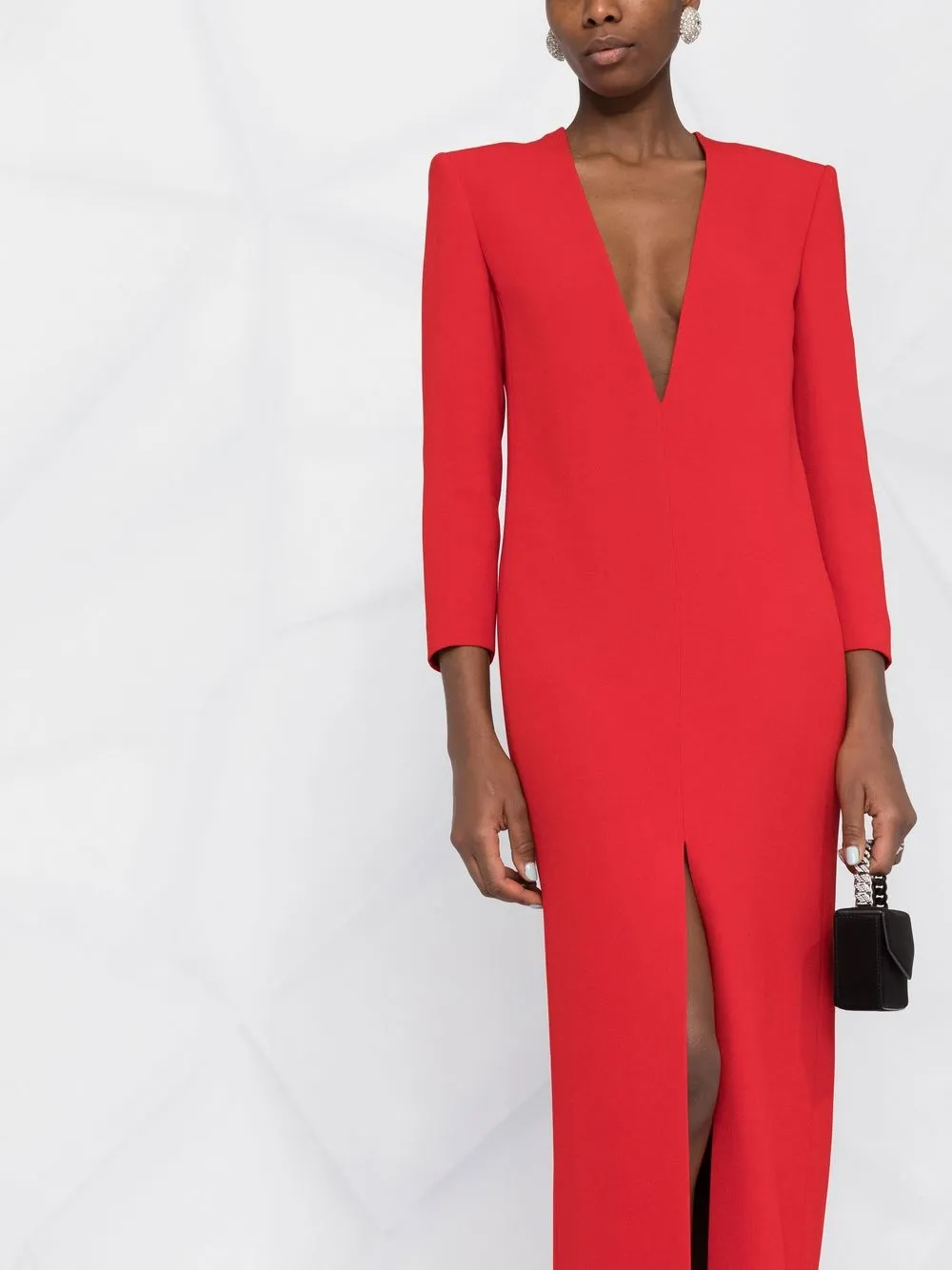Reflecting the brand's minimalist appeal, Saint Laurent presents this dress. Cut to a floor-length, this dress features a plunging V-neck and a front slit, letting the brand's clean lines stand out.