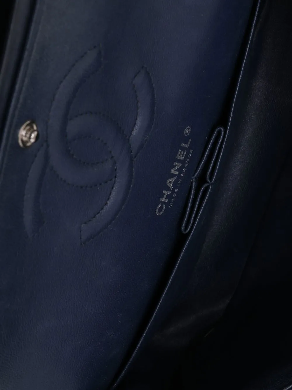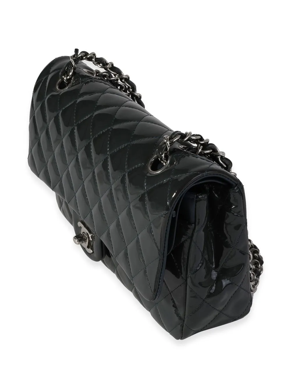 A timeless design from the maison, the Double Flap shoulder bag from Chanel is considered the pinnacle of sophistication. Presented in the medium size, it's crafted from black and navy blue diamond-quilted patent leather and finished with refined silver-tone hardware.