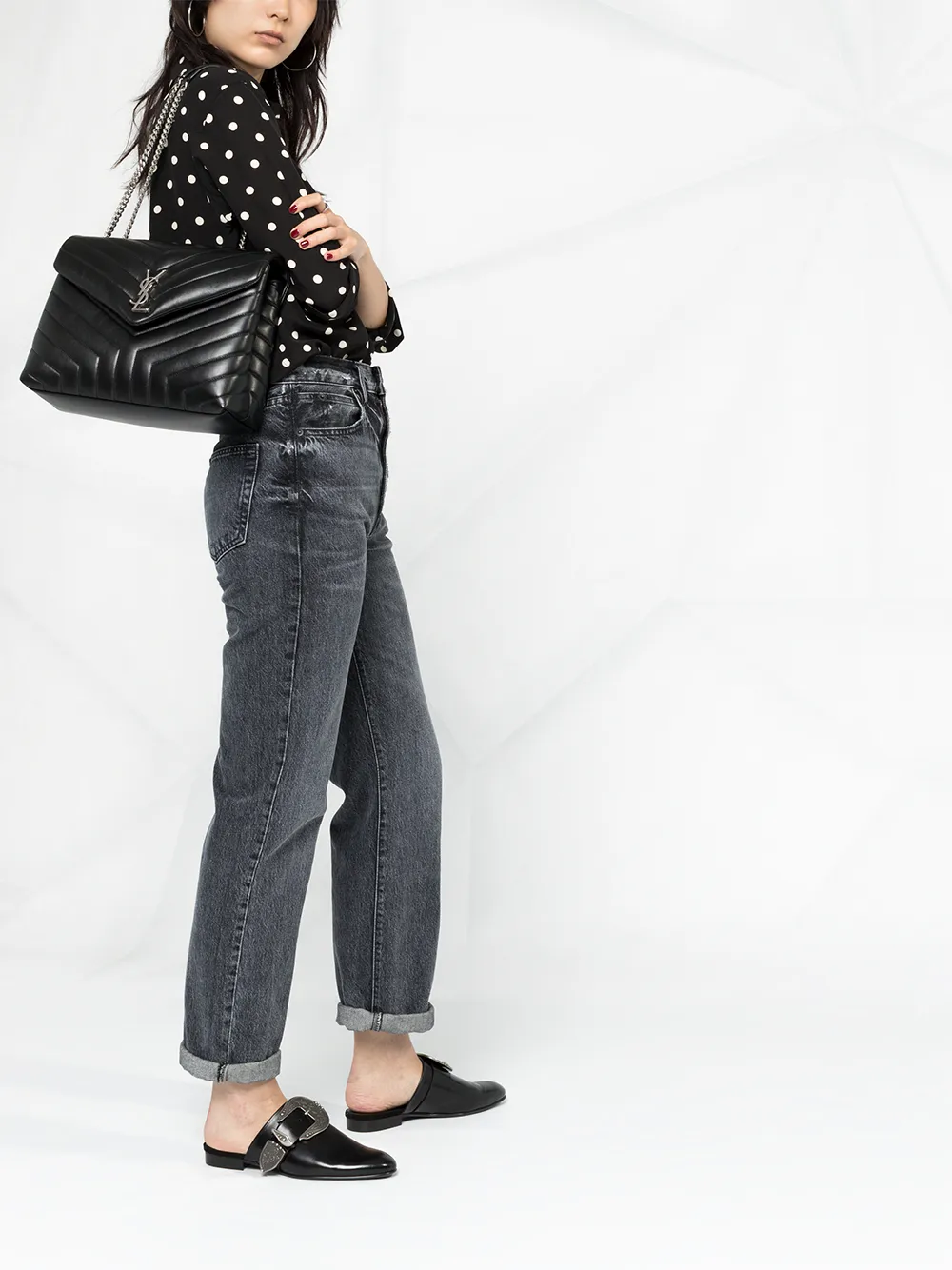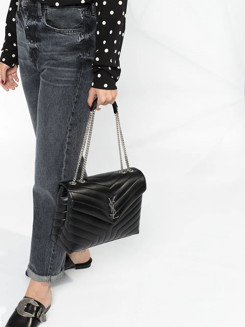 Saint Laurent's muse Loulou de la Falaise continues to inspire the House's line-up. The medium Loulou shoulder bag is presented in a timeless black hue and is made from leather with a quilted effect. Perfect for those mid-commute naps. Featuring a chain shoulder strap, a foldover top with magnetic closure, interior compartments divided by a partition, an internal zipped pocket, an internal slip pocket, a quilted effect, a logo plaque and silver-tone hardware.