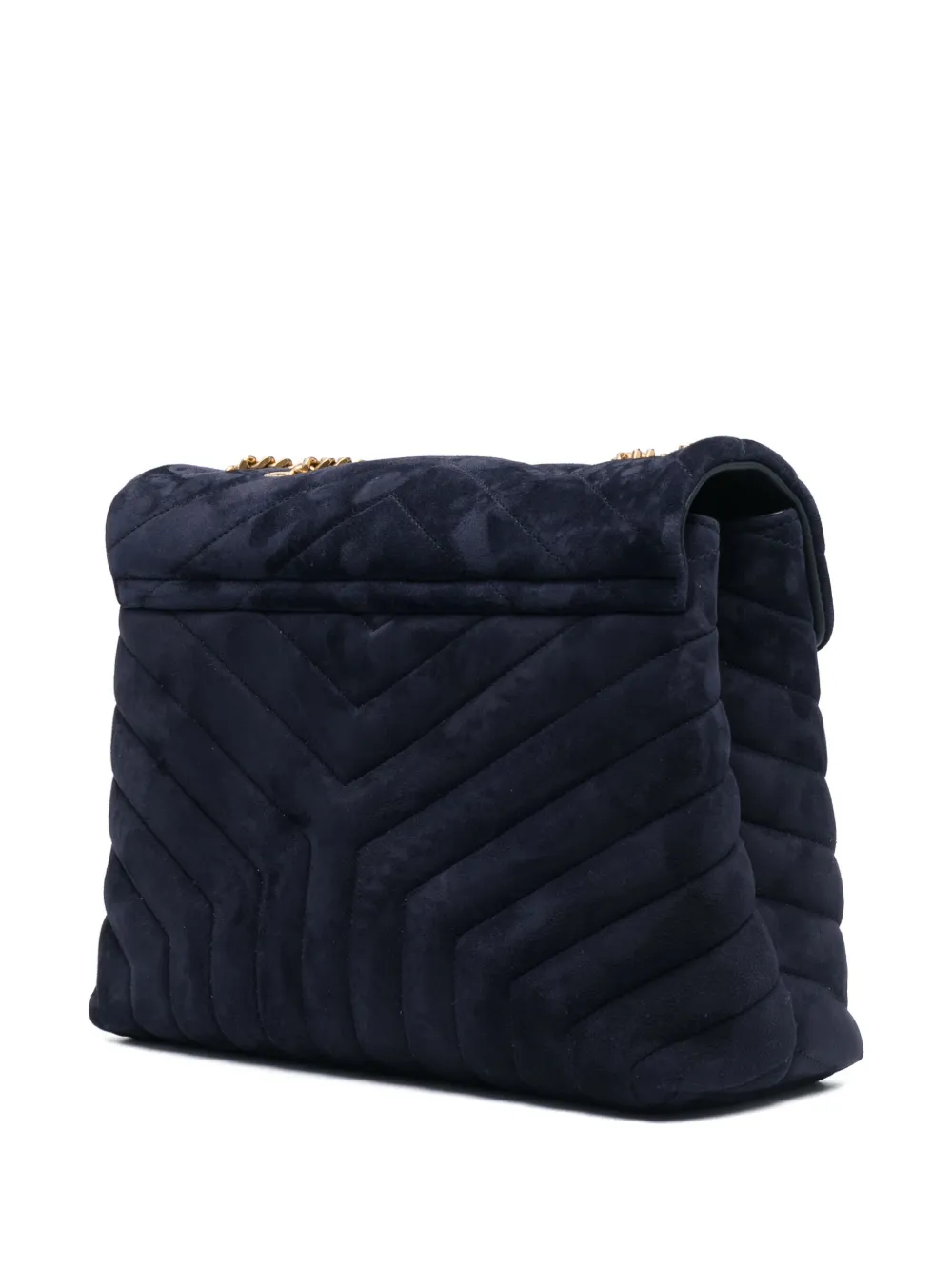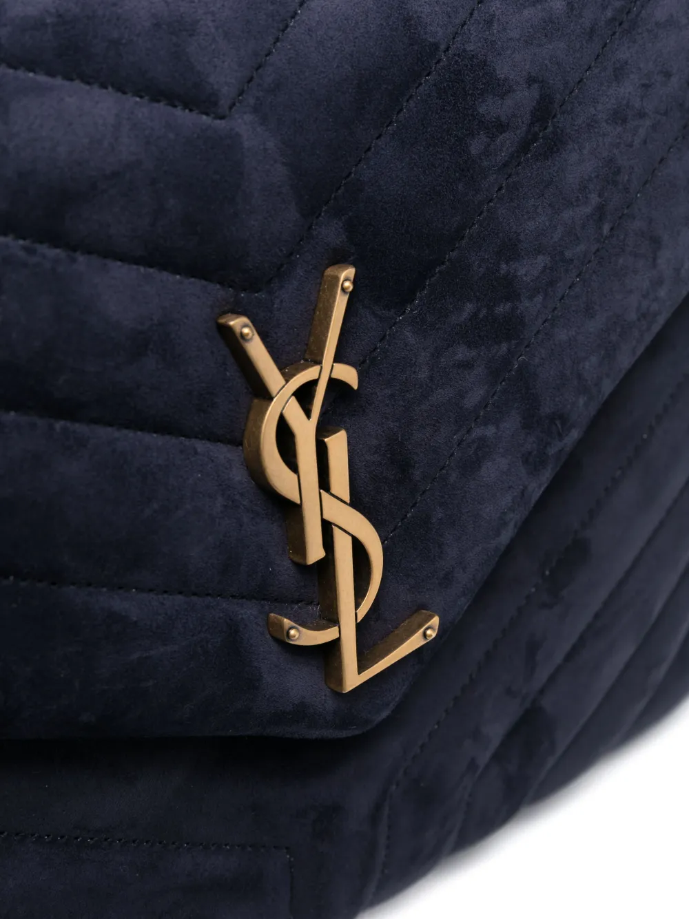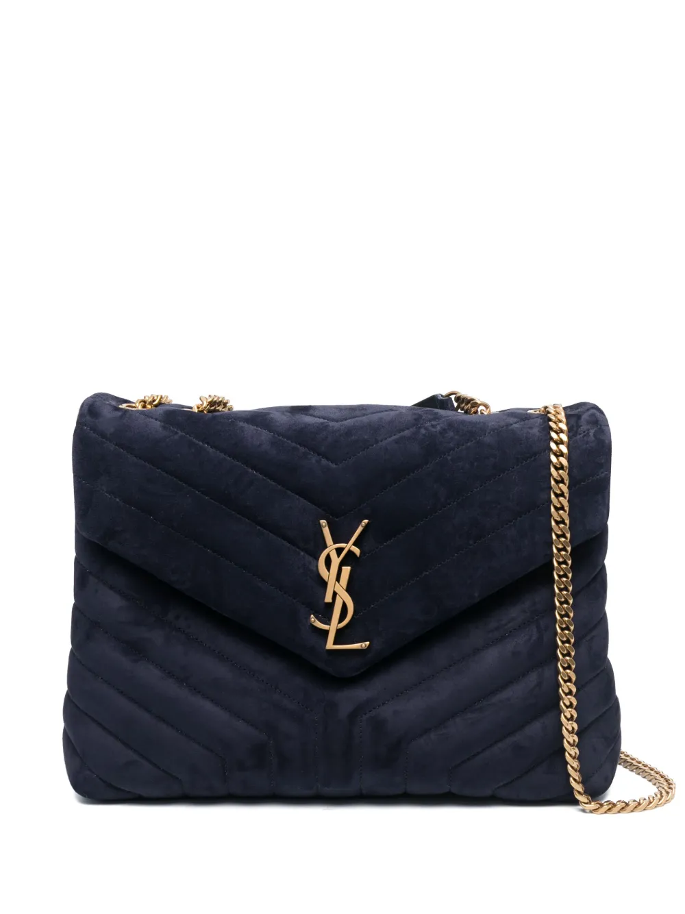 Saint Laurent's LouLou shoulder bag showcases the Parisian label's fine leather craftsmanship through the use of chevron quilting. Signature gold-tone monogram hardware punctuates the front, a hallmark of the label.