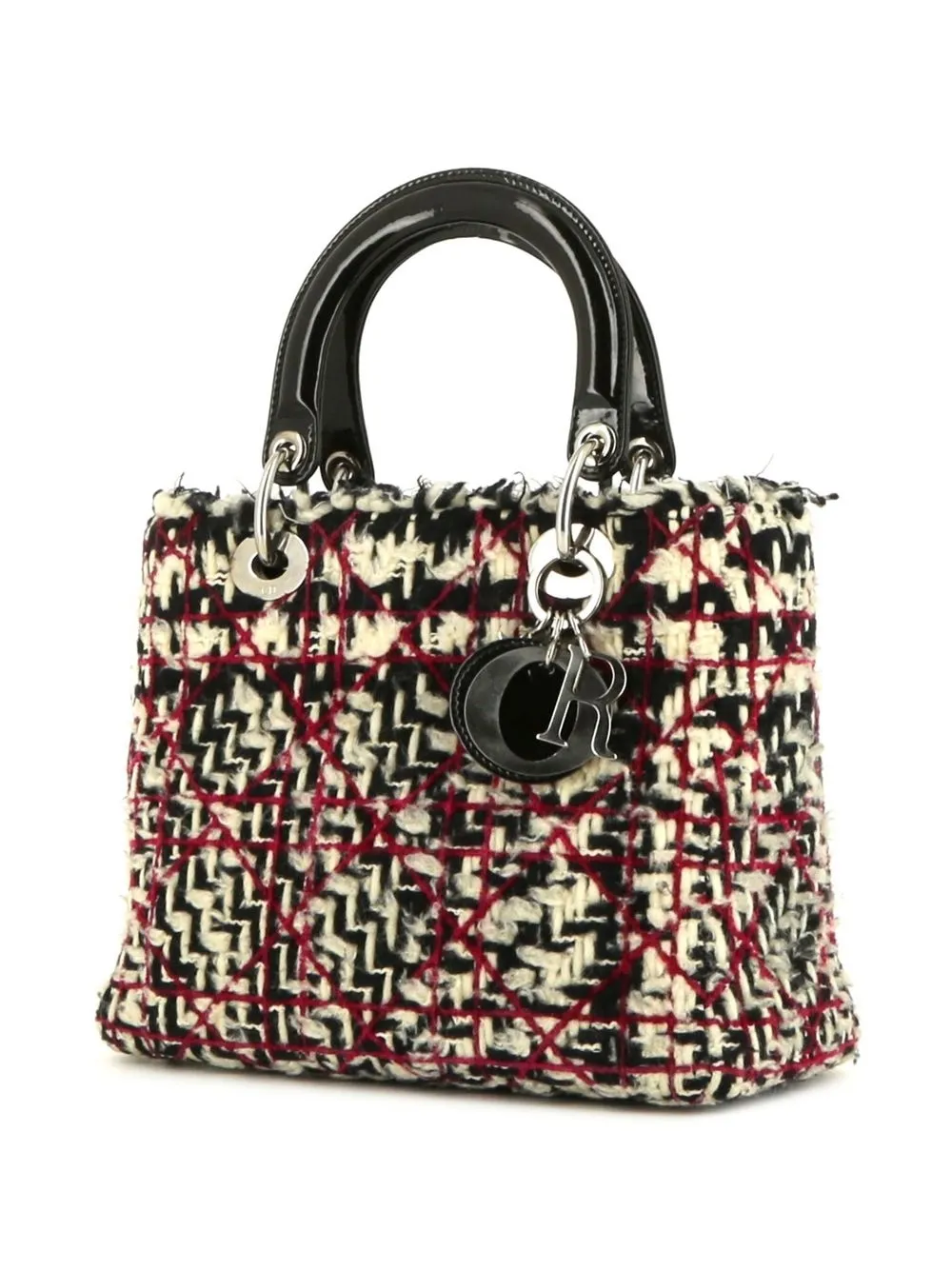 Originally designed with the Cannage quilt, Christian Dior’s Lady Dior now takes many shapes and styles. Presented here with a frayed tweed design, it boasts the brand’s signature Dior letters charm.
