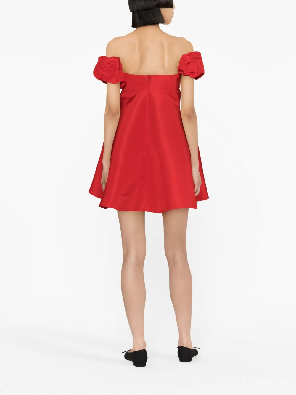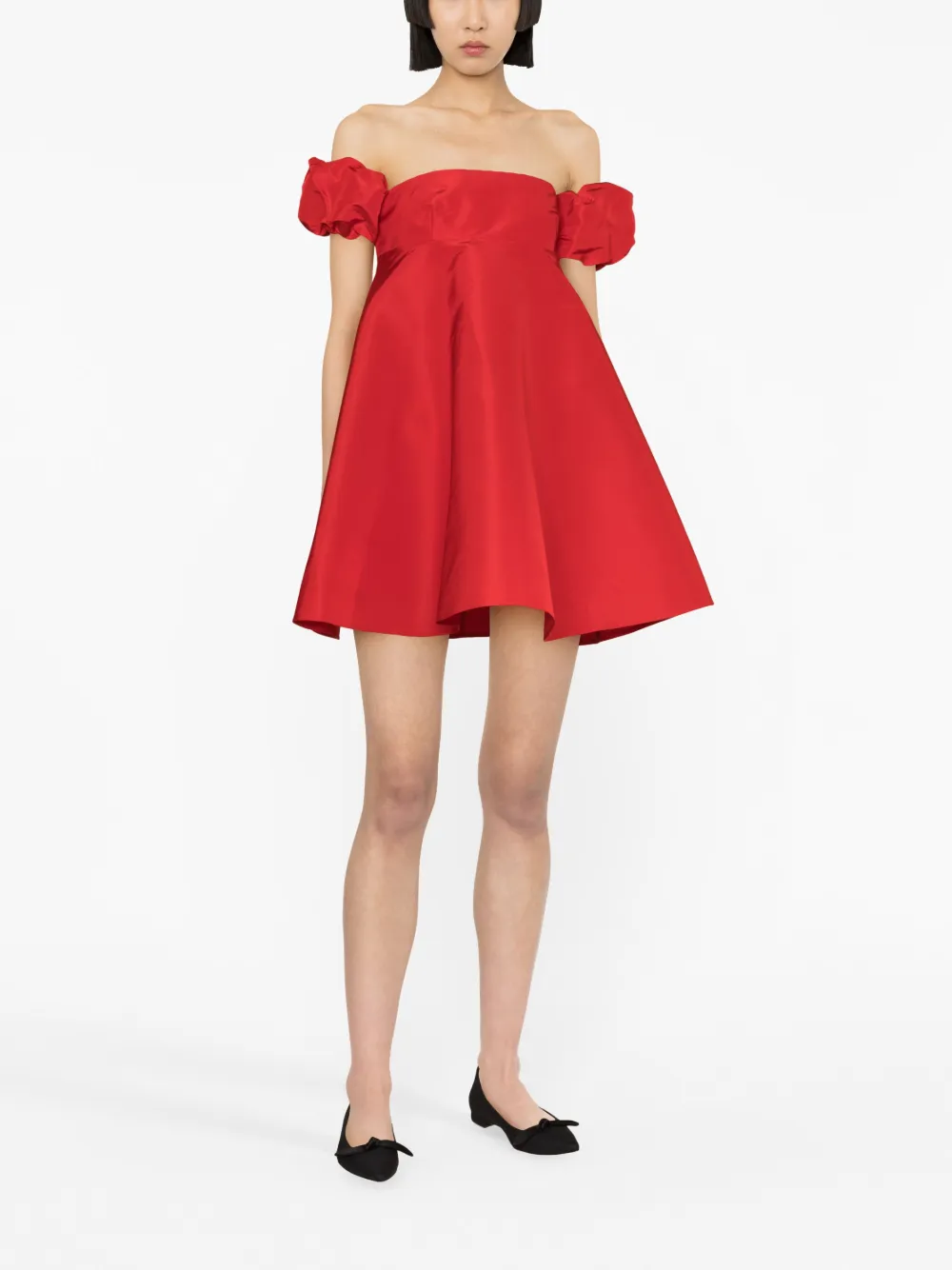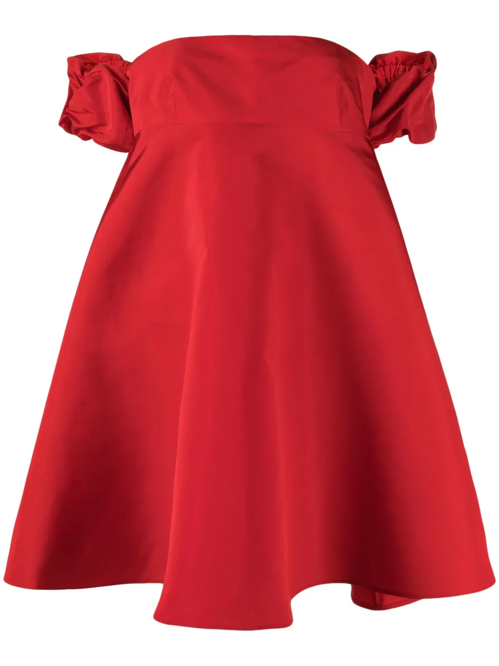 Cut from pure silk, Valentino Garavani's minidress features an off-shoulder construction before flaring at the hem.