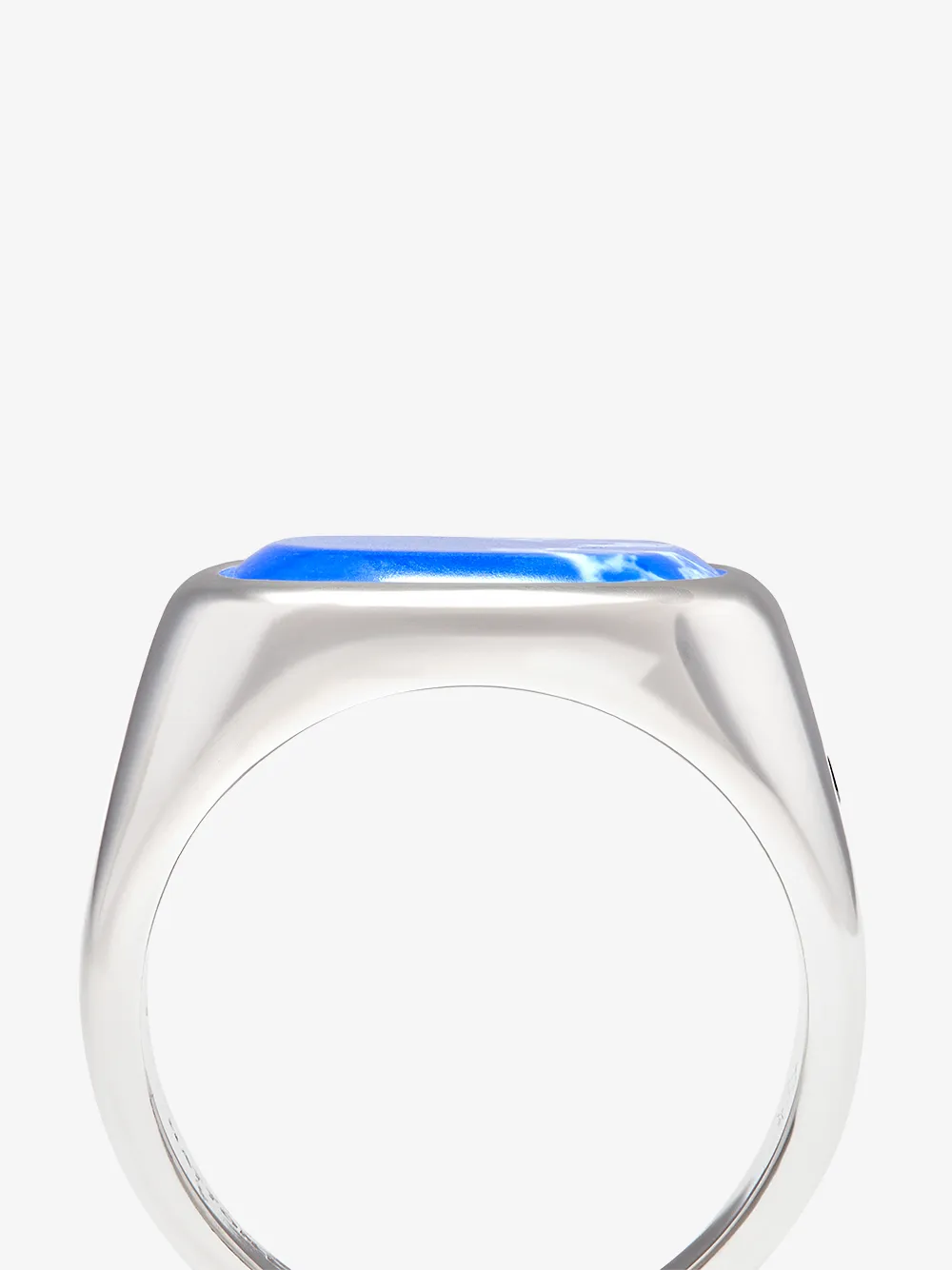 Hatton Labs offers contemporary jewellery inspired by London's multiple sub-cultures. Handcrafted in the city's jewellery district, Hatton Gardens, this signet ring is crafted from sterling silver. Adorned with a blue-tone stone, this refined piece features a square face that highlights the gem's darkly allure.