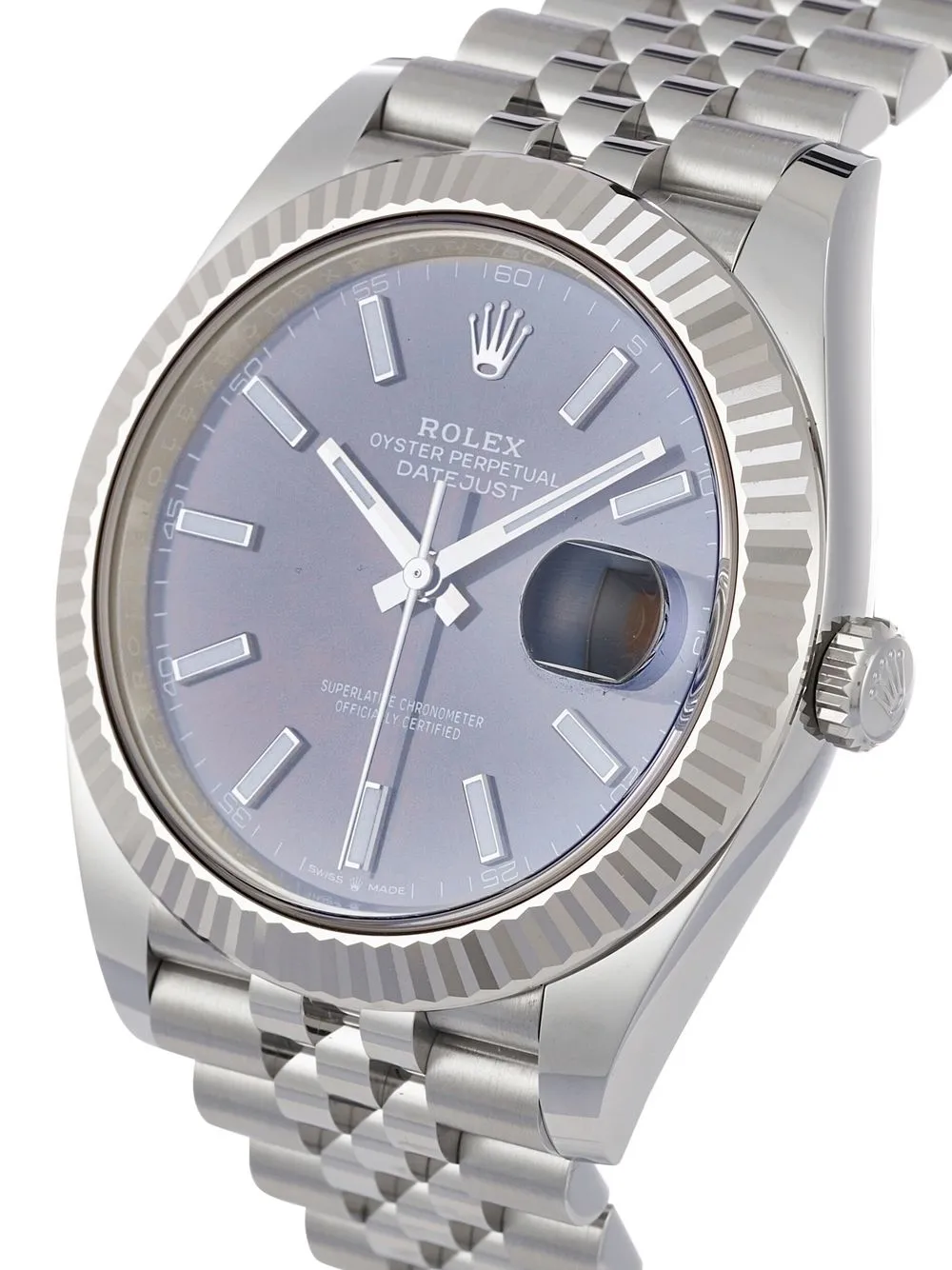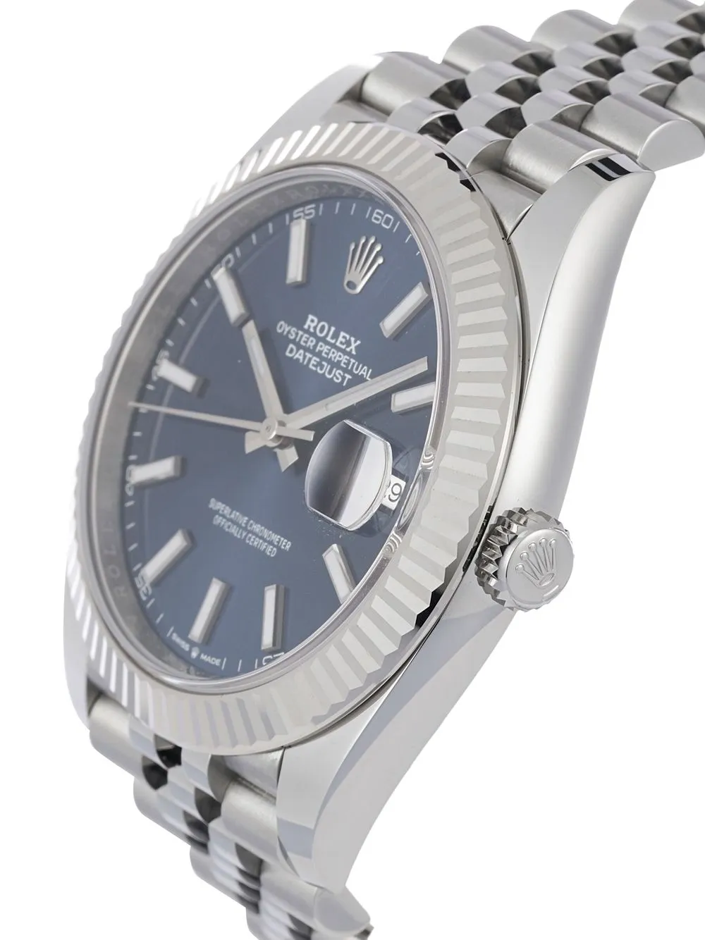 First presented in 1945, Rolex's iconic Datejust timepiece was the first automatic-winding watch to include a date window. Referred to by Rolex as a "classic watch of reference", the Datejust is one of its iconic models, perfectly fusing technical watchmaking know-how with a timeless and archival appeal like this unworn Datejust 41mm.