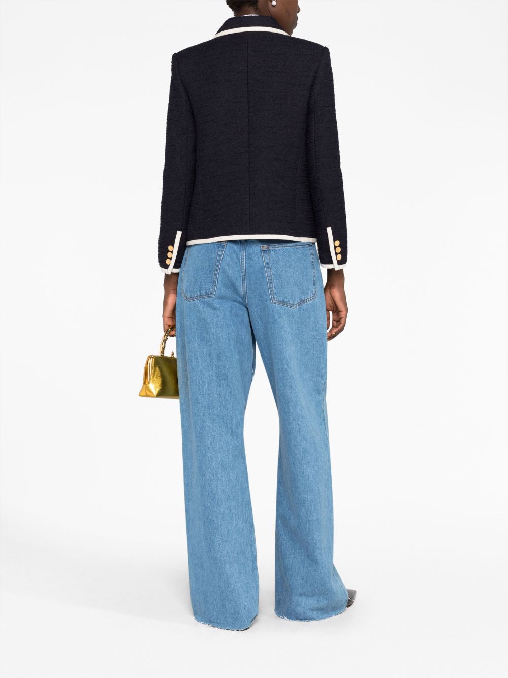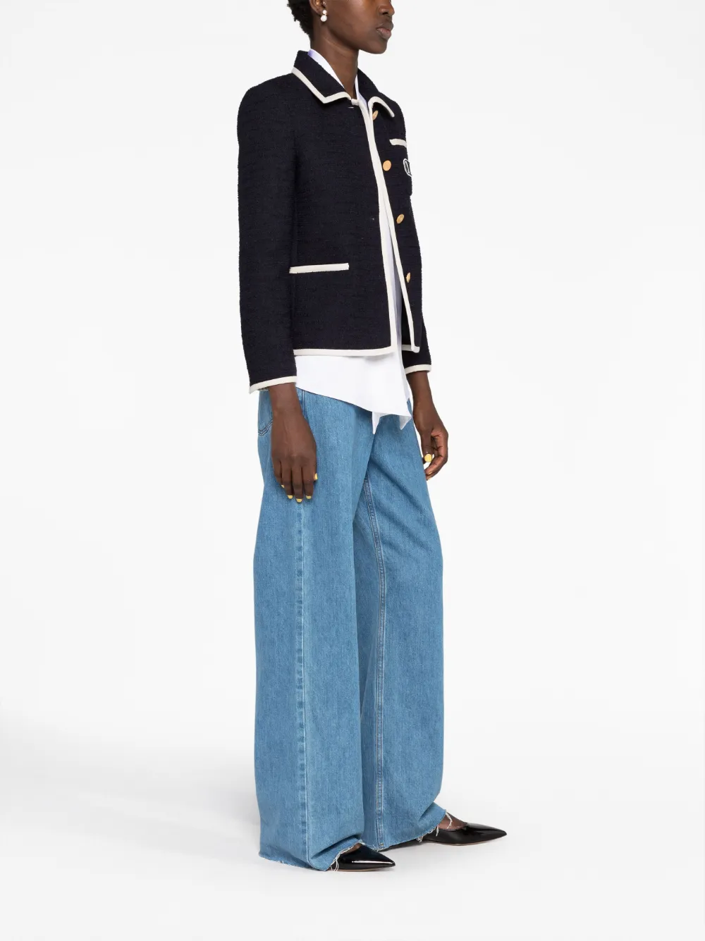 Made in Italy from a soft blend of cotton and wool, this navy single-breasted jacket is defined by its classic tweed construction. Trimmed with white edges that infuse the design with a nautical-inspired feel, it is decorated with a VLogo motif at the chest — one of Valentino Garavani's most renowned symbols.